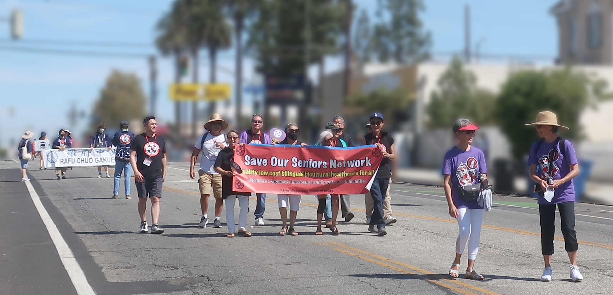 Little Tokyo Historical Society bringing in the parade. Photo by Douglas