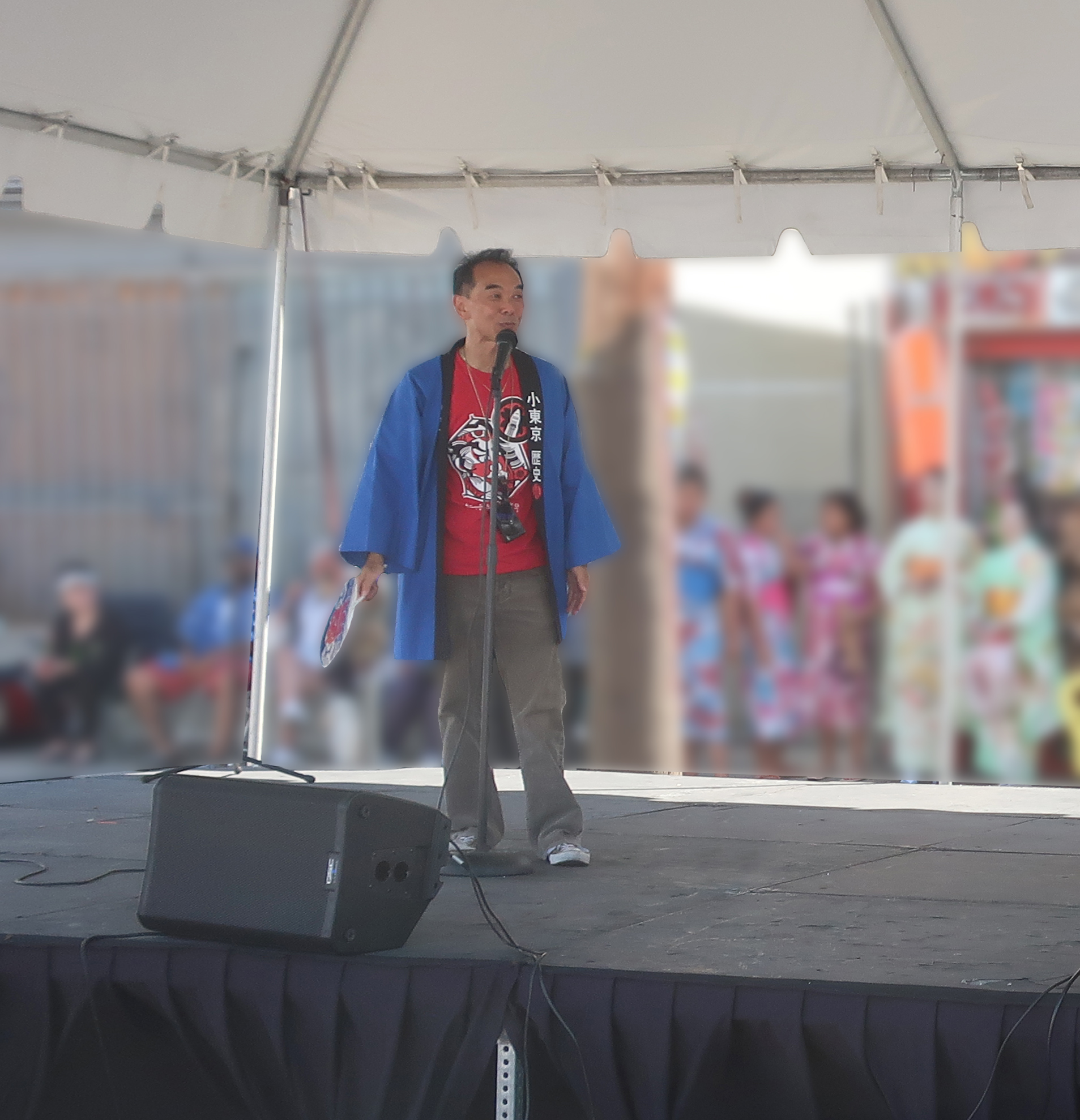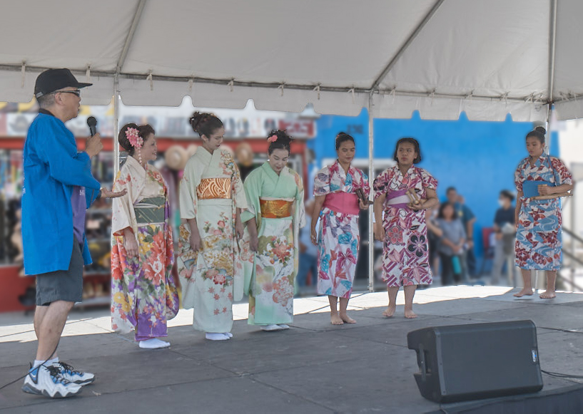 Jerry Nakafuji introduces the classic Japanese dancer's of Nihon, Buyo, Minyo and contemporary styles led by Nancy Hayata. Photo by Douglas